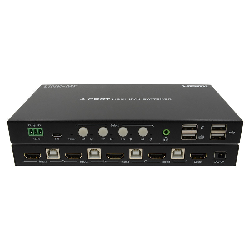 LINK-MI LM-KVM401C Das Gerät unterstützt das Schalten von HDMI-Video- und USB-Signalen von vier Computern auf einen Monitor und ein USB-Signalgerät.usw..