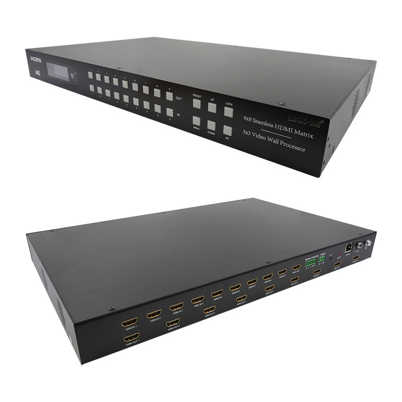 LINK-MI LM-TVM99B ist ein komplett neuer multifunktionaler Videoprozessor, der mit 3 Funktionen ausgestattet ist.Es ist mit 9 nahtlosen Ausgängen und 9 gemischten Eingängen., mit 1 HDMI-Schleife. Jede der 9 Eingangsquellen kann an eine der 9 Ausgänge angezeigt werden.